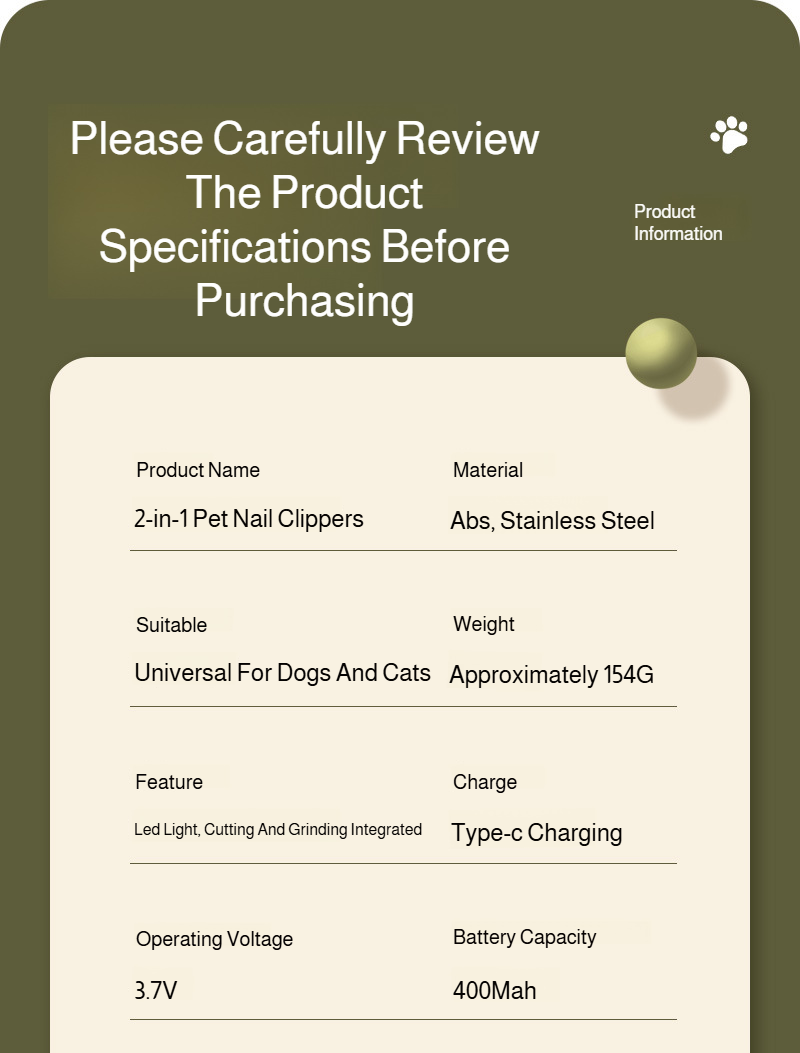 Electric Nail File and Trimmer for Cats and Dogs